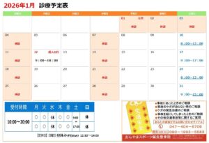 2026年1月のお休み
